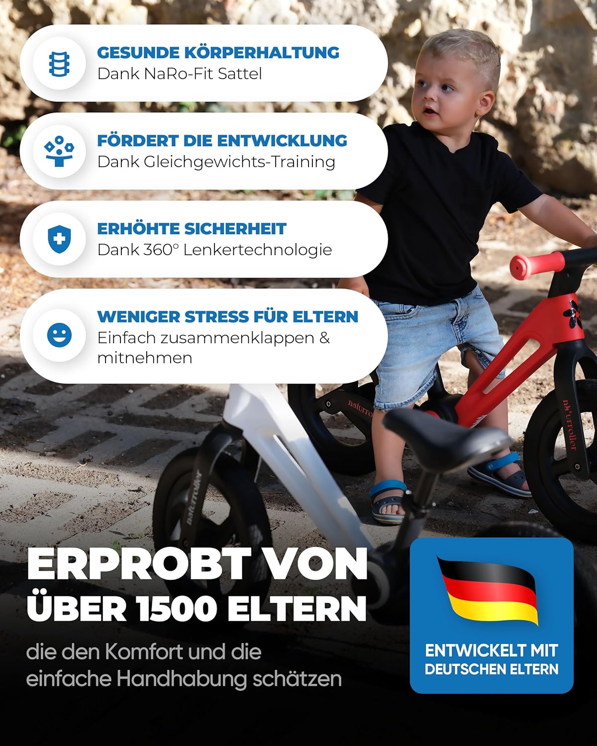 Da wir selbst Eltern sind, wissen wir genau, welche Probleme Eltern von Kindern in diesem Alter haben. Der Naturroller – das Kinder Laufrad ab 2 Jahre – ist die ideale Lösung für fürsorgliche Eltern, die die Fähigkeiten ihrer Kinder entwickeln und gleichzeitig Spaß haben wollen.